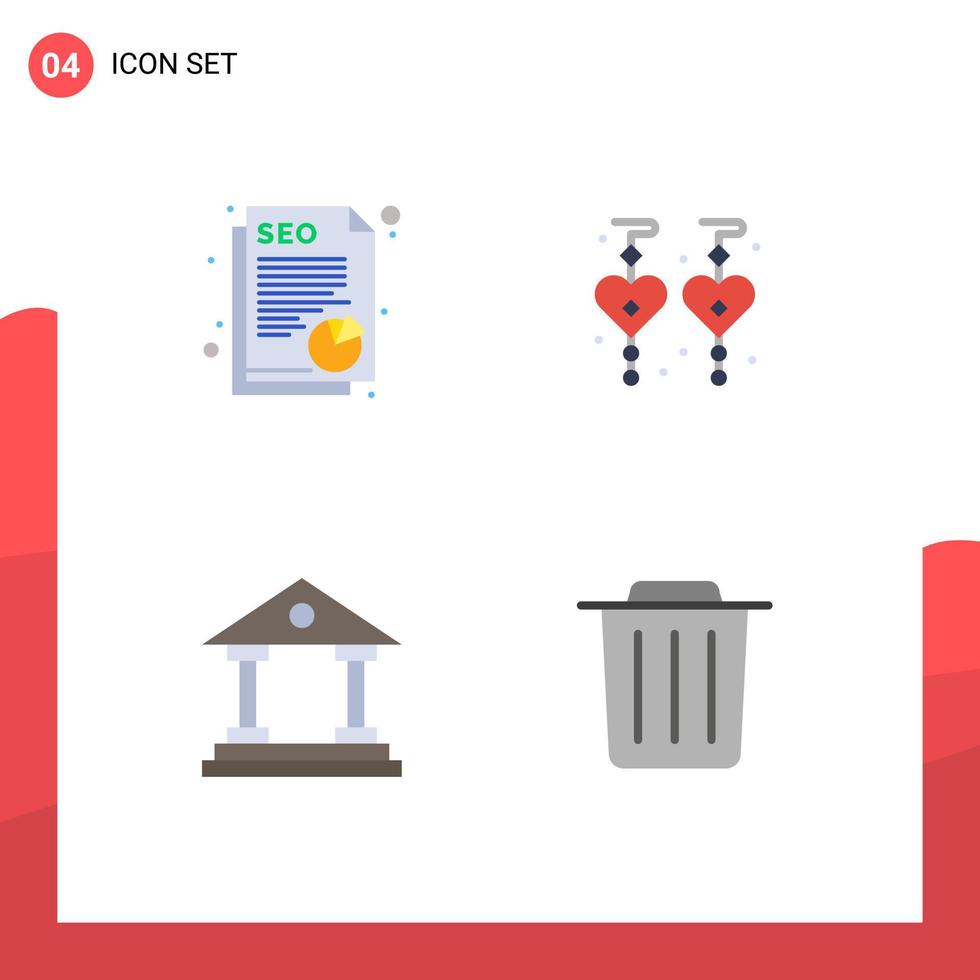 4 iconos planos universales establecidos para aplicaciones web y móviles documentan datos de la corte amor eliminar elementos de diseño vectorial editables vector