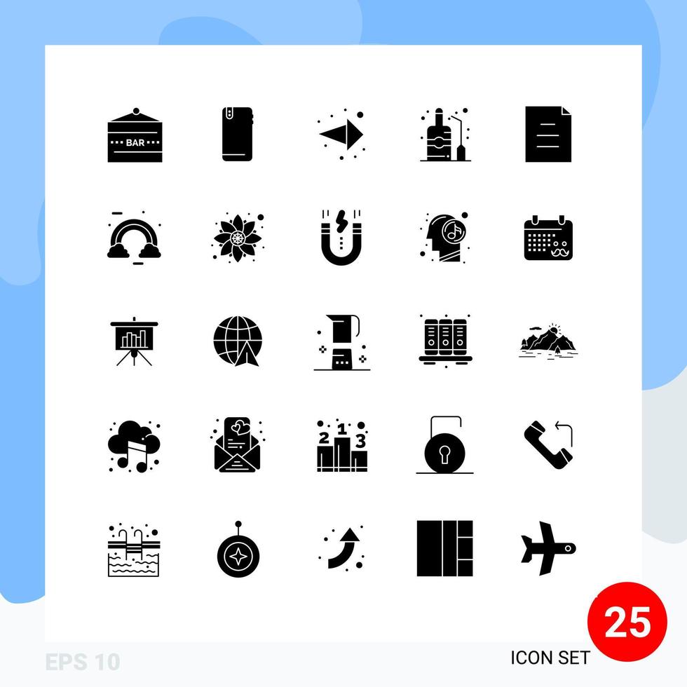 paquete de interfaz de usuario de 25 glifos sólidos básicos de botella de documento android alcohol elementos de diseño vectorial editables a la derecha vector
