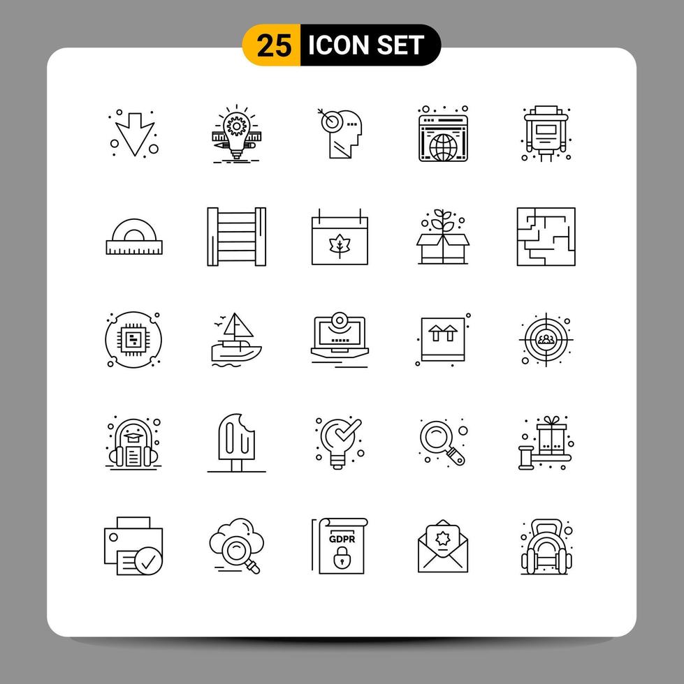 25 líneas universales establecidas para aplicaciones web y móviles puerto sitio web flecha internet elementos de diseño vectorial editables globales vector