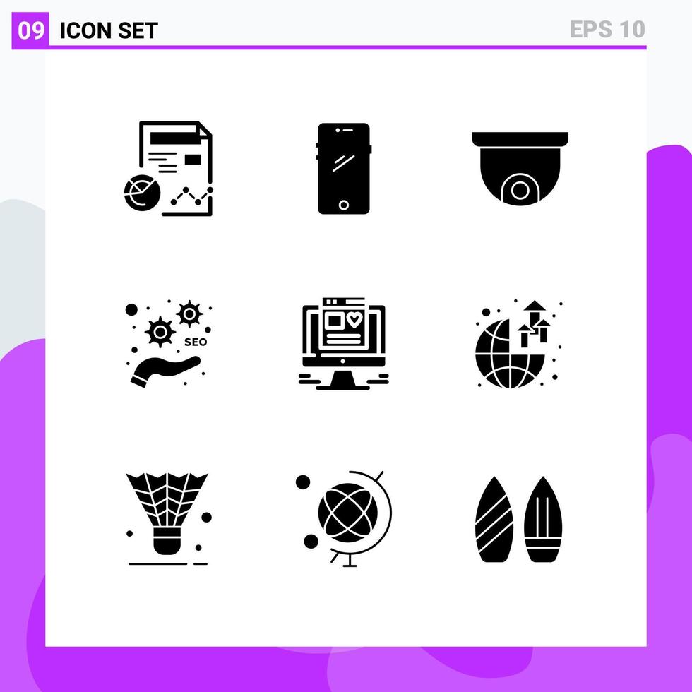 paquete de interfaz de usuario de 9 glifos sólidos básicos de elementos de diseño de vector editables de planificación de marketing de android seo de computadora