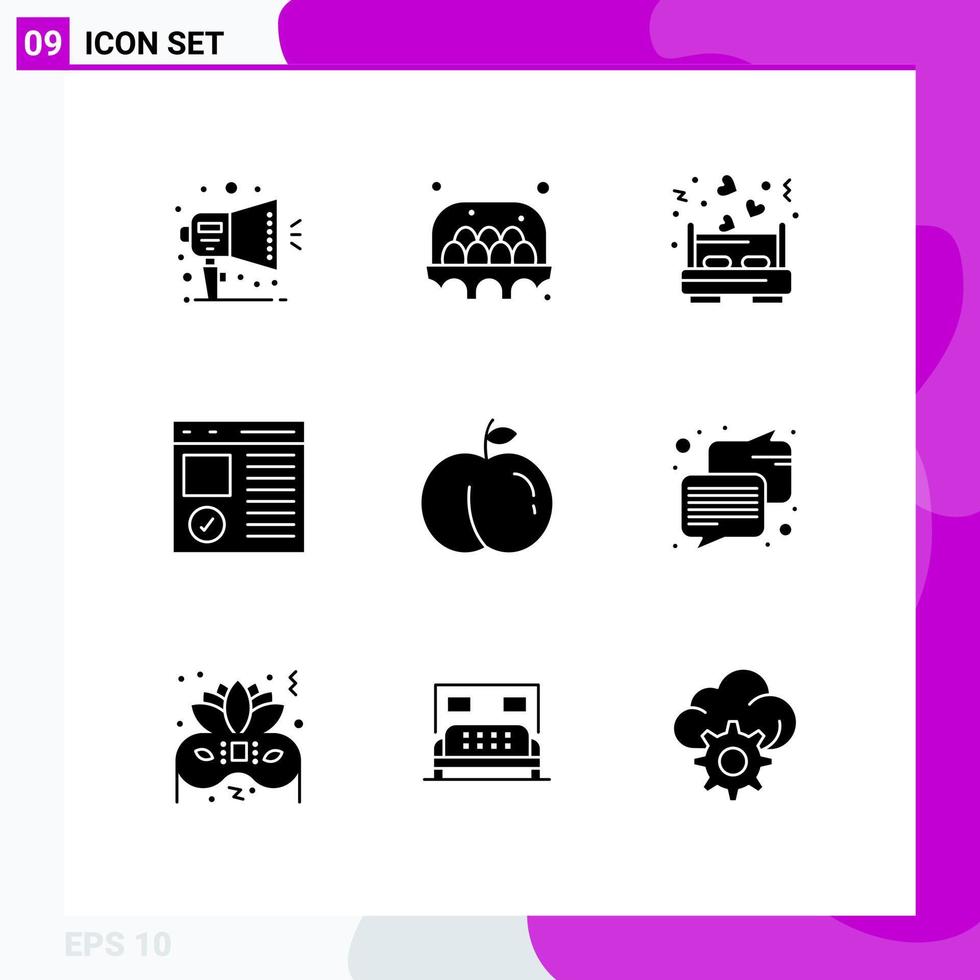 9 conjunto de glifos sólidos universales para aplicaciones web y móviles cama de desarrollo de frutas desarrollar elementos de diseño vectorial editables del navegador vector