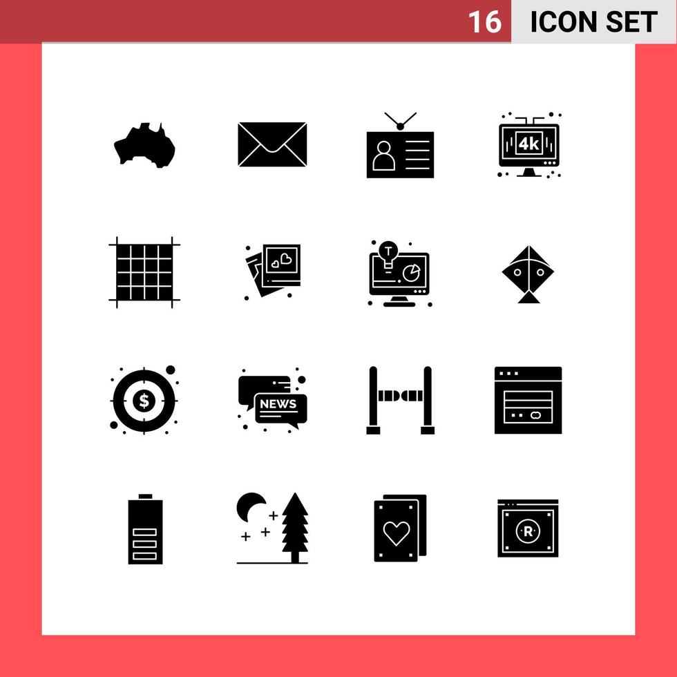 16 concepto de glifo sólido para sitios web móviles y aplicaciones tecnología de cuadrícula medios de red global computadora elementos de diseño vectorial editables vector