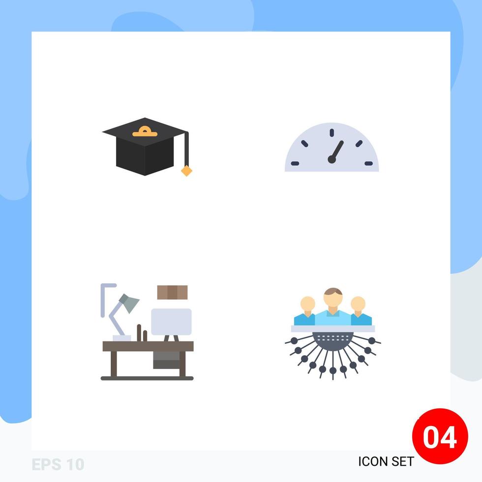 grupo de 4 iconos planos modernos establecidos para elementos de diseño vectorial editables de asignación de tabla de tablero de computadora cap vector