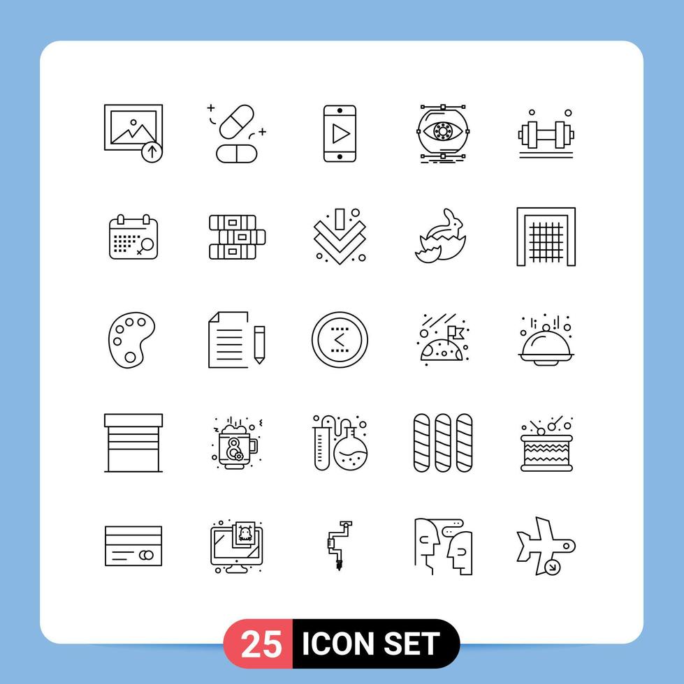 25 líneas vectoriales temáticas y símbolos editables de ejercicios con mancuernas, control de visión, elementos de diseño vectorial editables vector