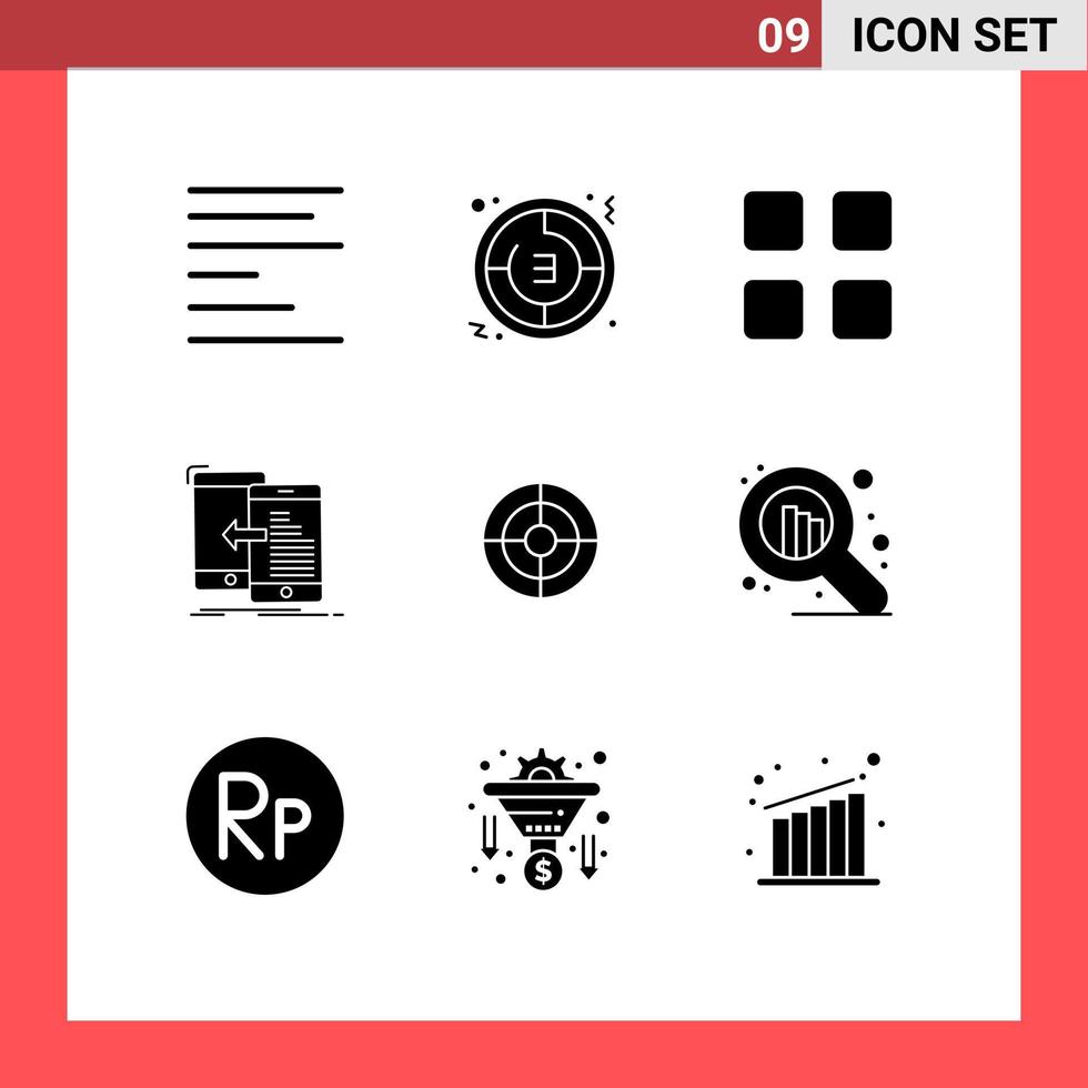 9 glifos sólidos vectoriales temáticos y símbolos editables de gestión empresarial calc datos móviles elementos de diseño vectorial editables vector