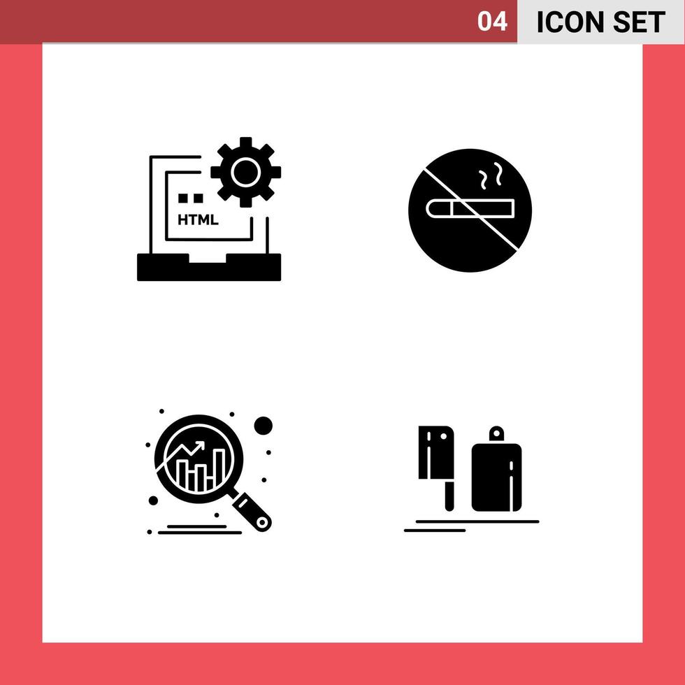 conjunto de 4 paquetes de glifos sólidos comerciales para el desarrollo de análisis de código no fumar descubrir elementos de diseño vectorial editables Vector Gratis
