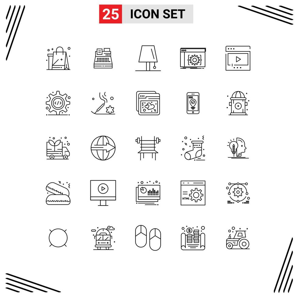 25 líneas vectoriales temáticas y símbolos editables de elementos de diseño vectorial editables ligeros de api de compras de aplicaciones para desarrolladores vector