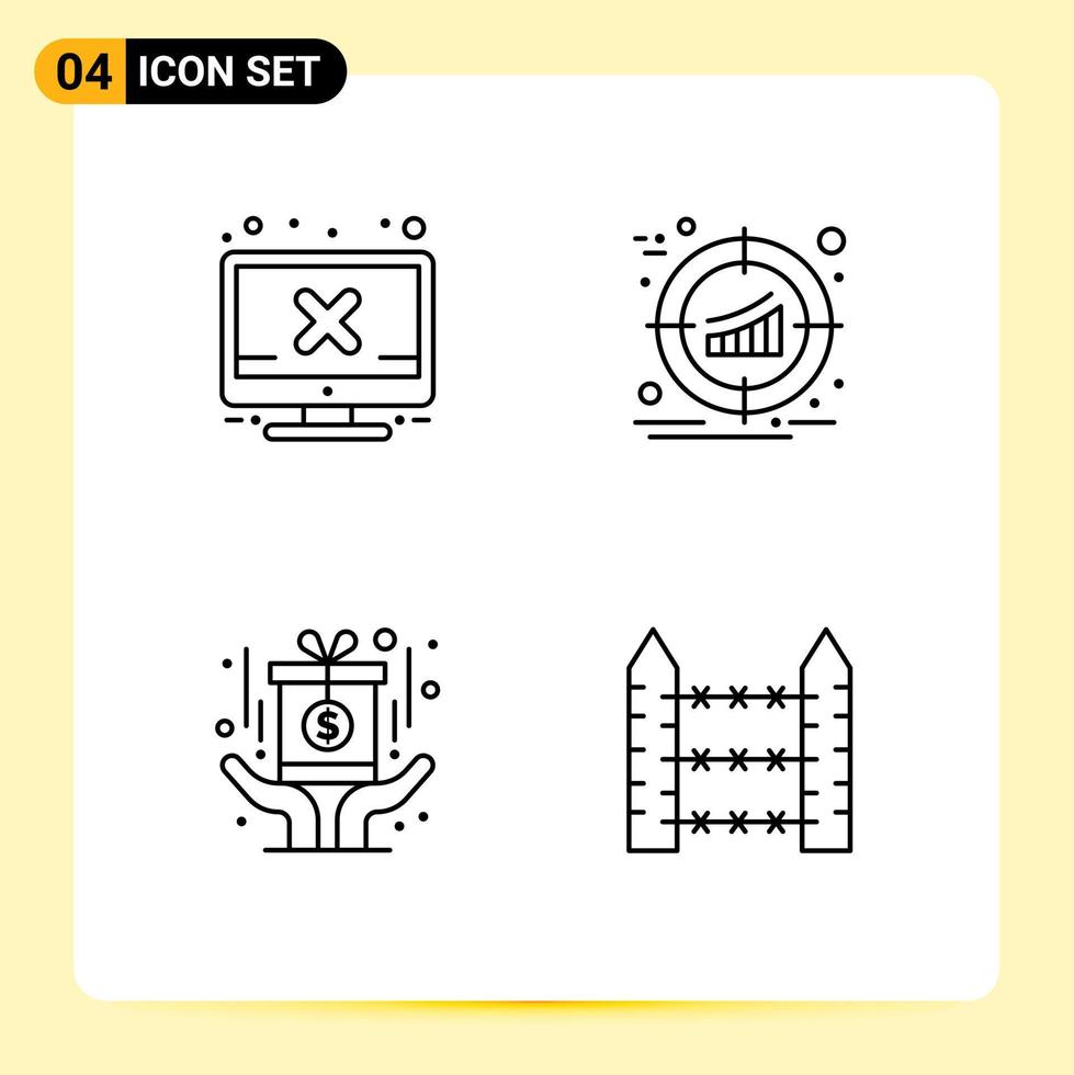 Concepto de 4 líneas para sitios web móviles y aplicaciones computadora premio error marketing recompensa elementos de diseño vectorial editables vector