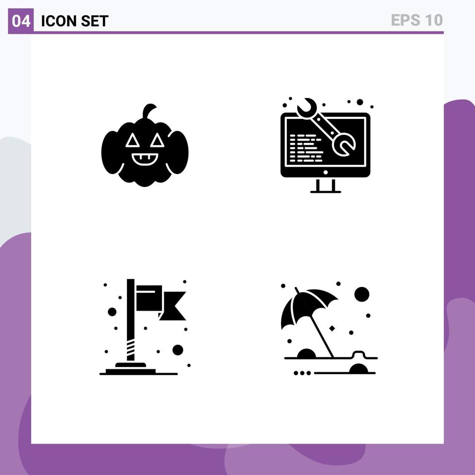 paquete de iconos de vector de stock de 4 signos y símbolos de línea para codificación de mapa de calabaza protección de desarrollo web elementos de diseño de vector editables
