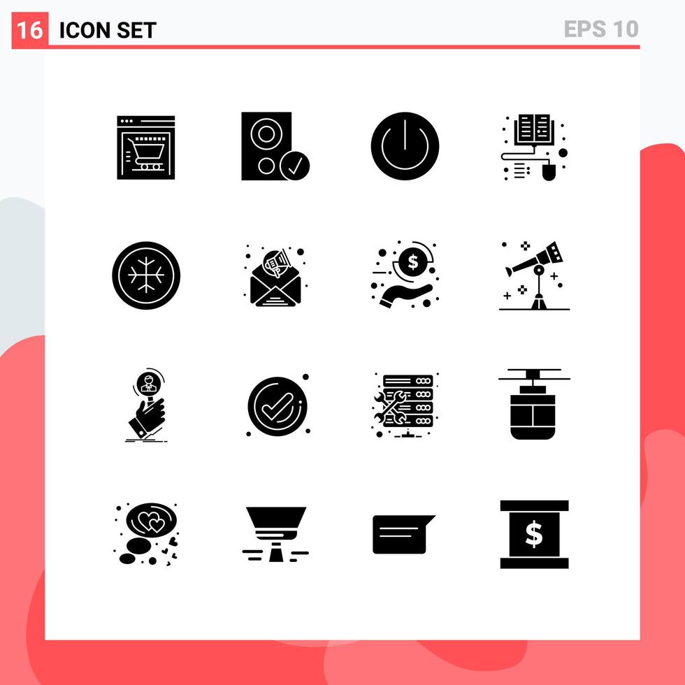 conjunto de glifos sólidos de interfaz móvil de 16 pictogramas de elementos de diseño vectorial editables de poder de aprendizaje a distancia de botón de libro electrónico helado vector