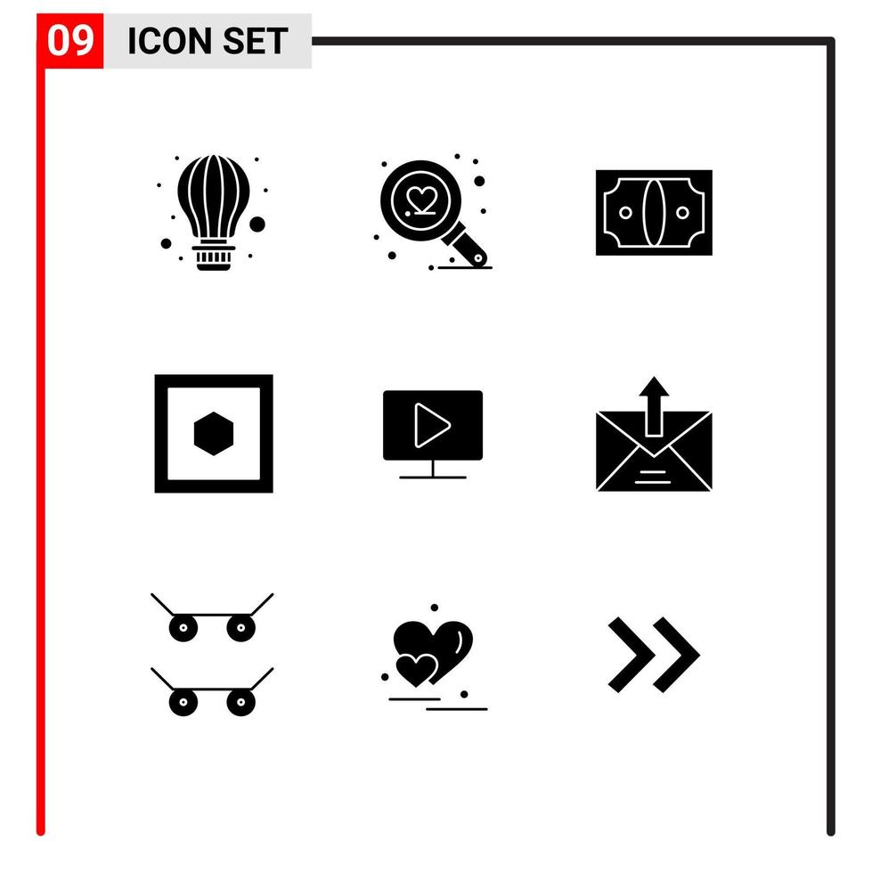 conjunto de 9 iconos de interfaz de usuario modernos signos de símbolos para elementos de diseño de vector editables en forma de monitor de efectivo de computadora de juego
