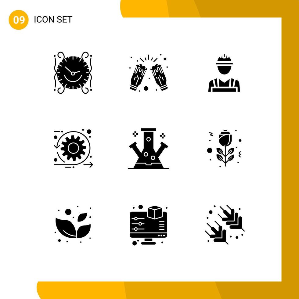 9 conjunto de glifos sólidos universales para aplicaciones web y móviles elementos de diseño vectorial editables de mano de obra ágil vector