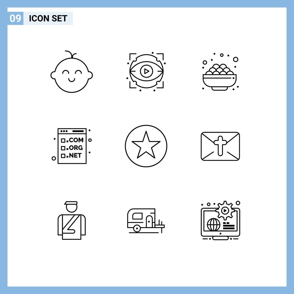 grupo de 9 esboza signos y símbolos para programación multimedia código de desarrollo de comestibles elementos de diseño vectorial editables vector