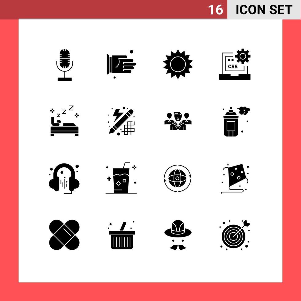 grupo de 16 glifos sólidos modernos establecidos para la cama desarrollar elementos de diseño vectorial editables de código css de manzanilla vector
