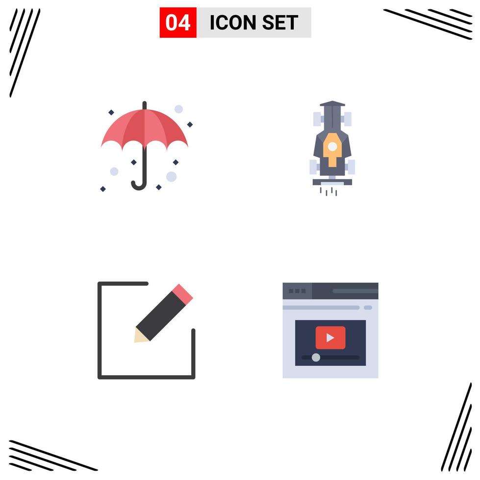 paquete de línea vectorial editable de 4 iconos planos simples de playa componer juego húmedo escribir elementos de diseño vectorial editables vector
