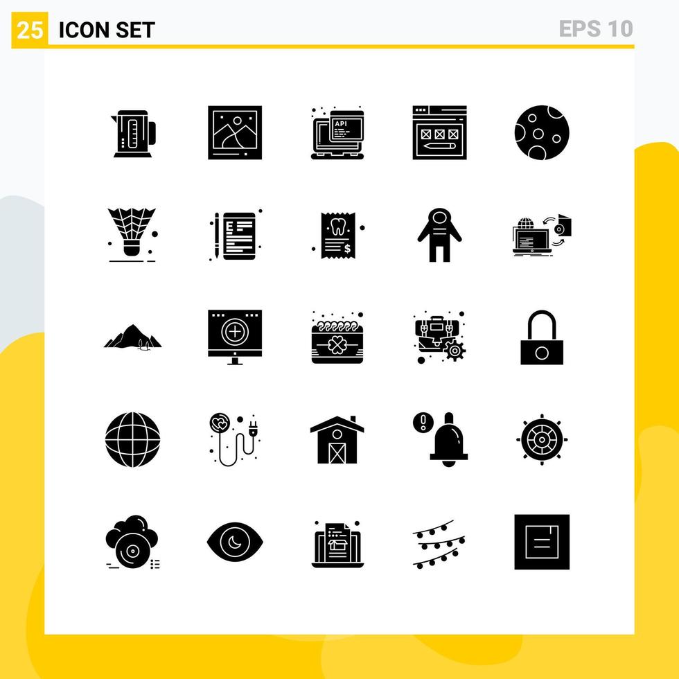 conjunto de 25 glifos sólidos vectoriales en la cuadrícula para el sitio web lunar api web internet elementos de diseño vectorial editables vector