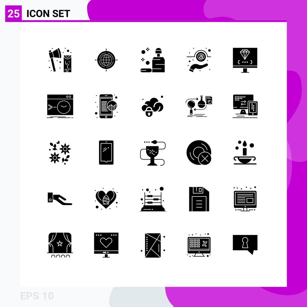 paquete de líneas vectoriales editables de 25 glifos sólidos simples de codificación de mensajes conectados a mano elementos de diseño vectorial editables de jabón vector