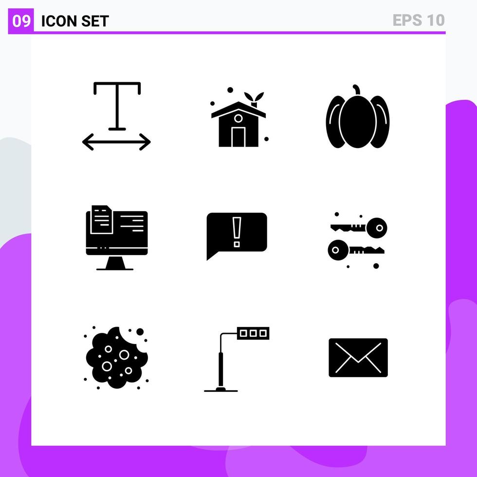 9 concepto de glifo sólido para sitios web móviles y aplicaciones criptografía error básico de vegetales elementos de diseño de vectores editables en línea