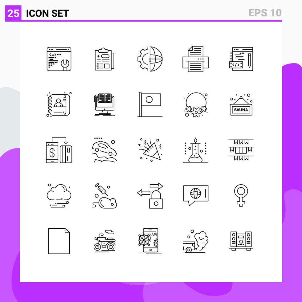 25 símbolos de signos de línea universales de programación de solicitantes codificación internacional imprimir elementos de diseño vectorial editables vector