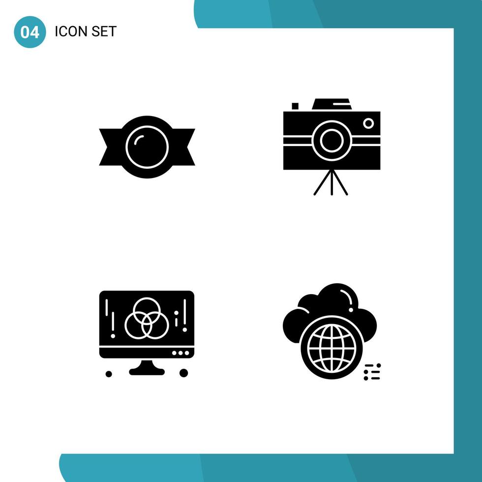 4 conjunto de glifos sólidos universales para aplicaciones web y móviles desarrollo de bombones videocámara cámara profesional elementos de diseño vectorial editables creativos vector