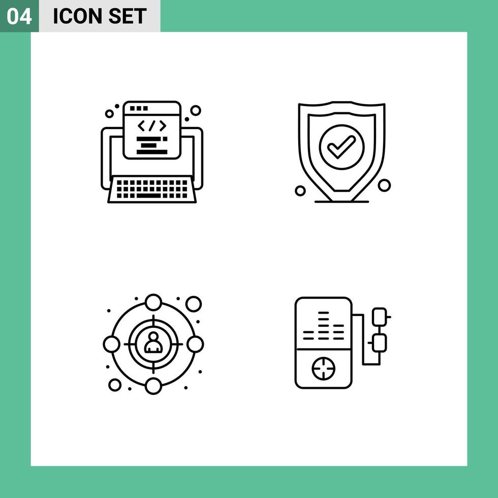 Concepto de 4 líneas para sitios web móviles y aplicaciones código objetivo seguridad web reproducir elementos de diseño vectorial editables vector
