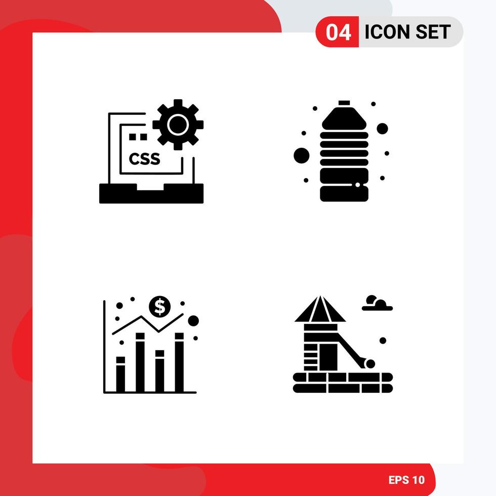 grupo de signos y símbolos de glifos sólidos para desarrollar elementos de diseño vectorial editables de gráfico de juego de desarrollo digital de código vector