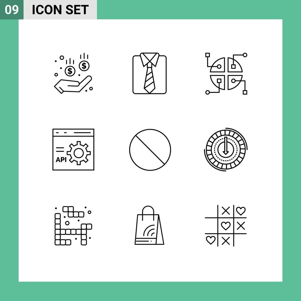 9 contornos de vectores temáticos y símbolos editables de programación de red sin cancelación desarrollan elementos de diseño de vectores editables