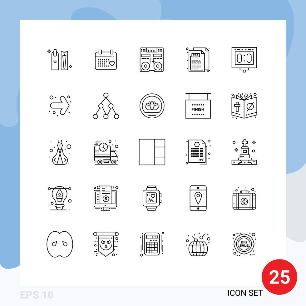25 líneas universales establecidas para aplicaciones web y móviles estilo css mezclador de código de boda elementos de diseño vectorial editables vector