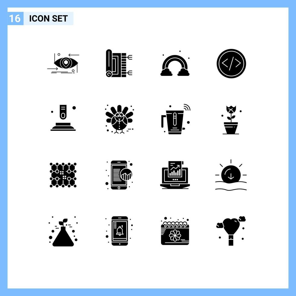 paquete de 16 glifos sólidos creativos de programación codificación rezar código primavera elementos de diseño vectorial editables vector
