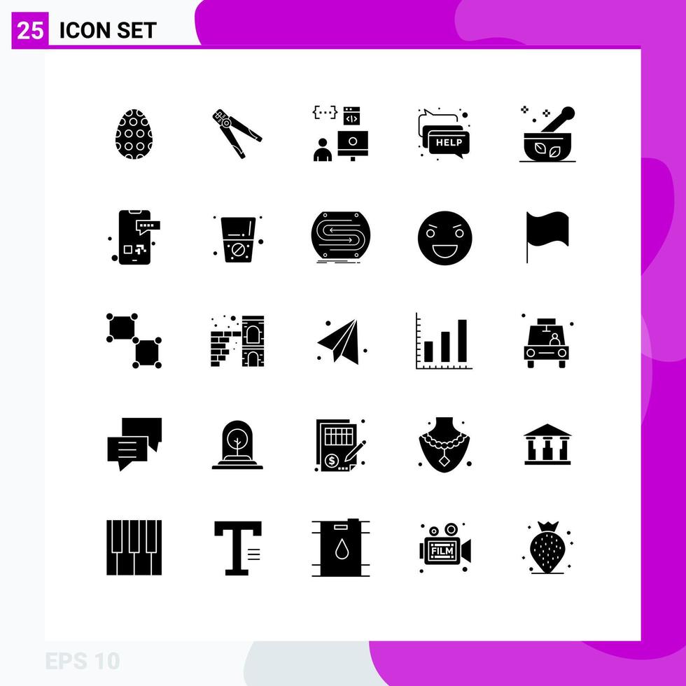 25 glifos sólidos vectoriales temáticos y símbolos editables del programador de herramientas de chat de ayuda para desarrollar elementos de diseño vectorial editables vector