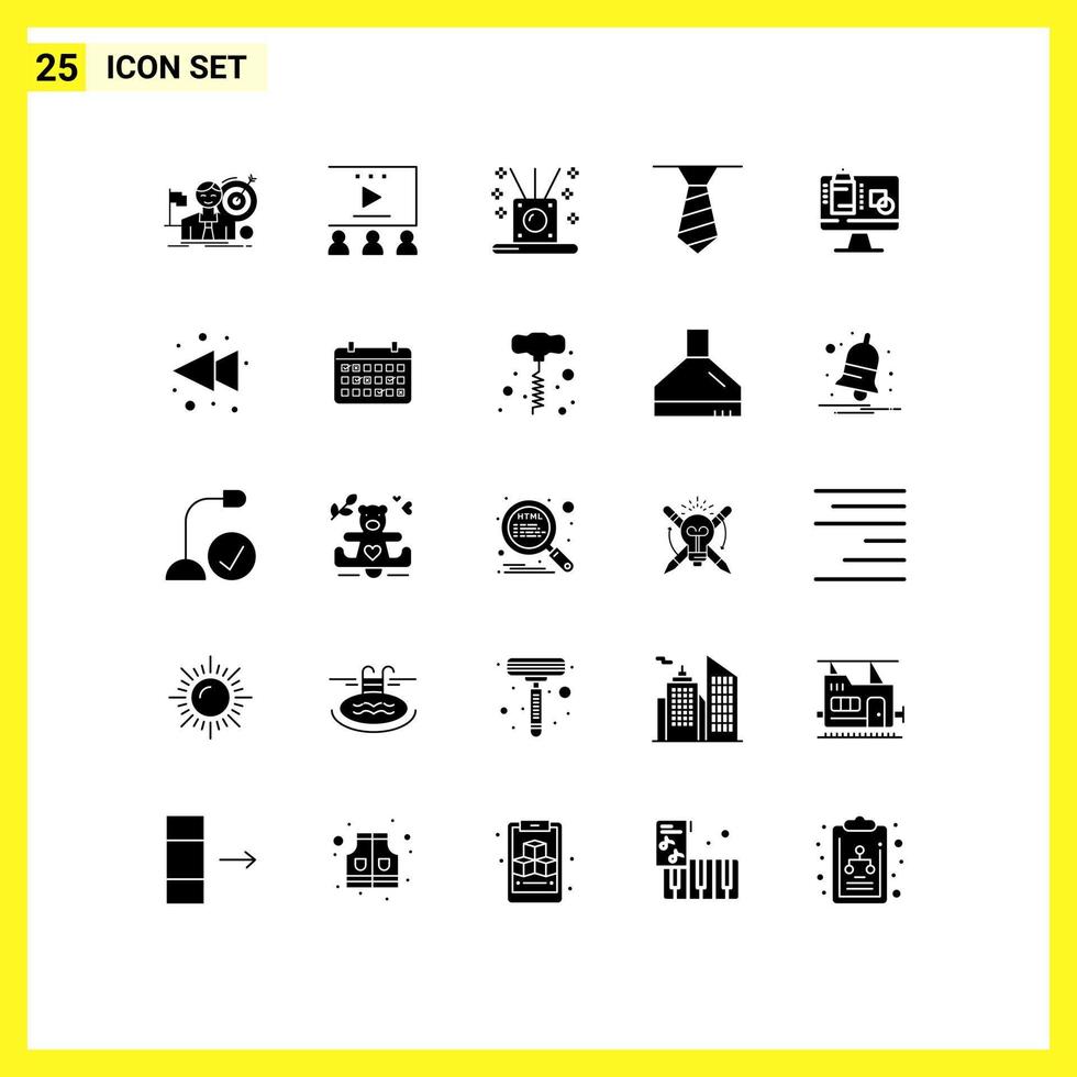25 glifos sólidos vectoriales temáticos y símbolos editables de datos videotutoriales de computadora palos de ropa elementos de diseño vectorial editables vector