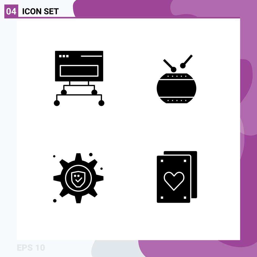 4 conjunto de glifos sólidos universales para aplicaciones web y móviles base de datos de seguridad informática tarjetas chinas elementos de diseño vectorial editables vector