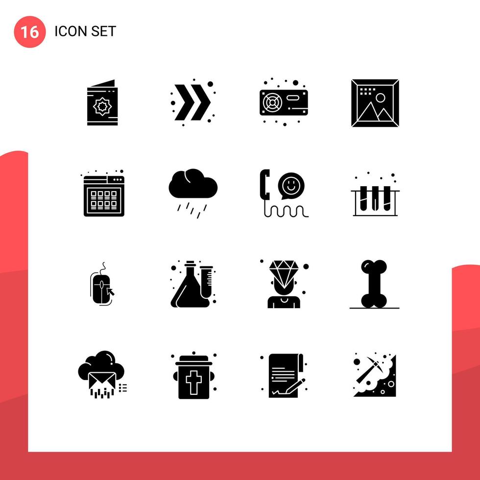 grupo de 16 glifos sólidos modernos establecidos para el desarrollo de programación elementos de diseño de vectores editables vga de diseño de computadora