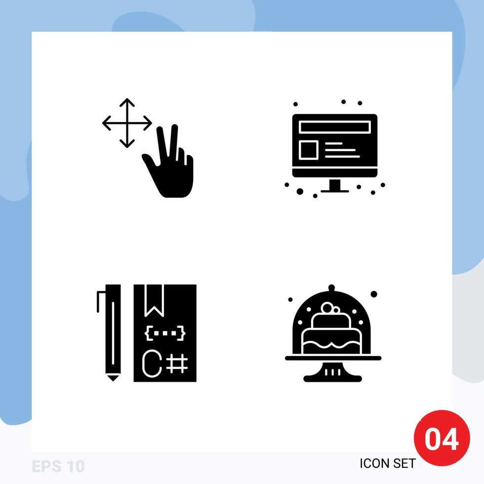 4 conjunto de glifos sólidos universales para aplicaciones web y móviles codificación de dedos desarrollo de páginas web de computadora elementos de diseño de vectores editables