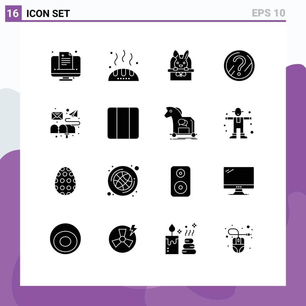 paquete de líneas vectoriales editables de 16 glifos sólidos simples de solución de correo electrónico problema de canasta pregunta elementos de diseño vectorial editables vector