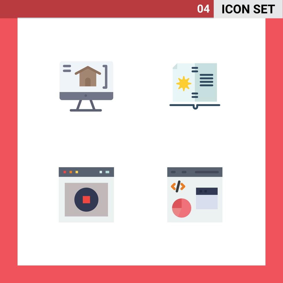 conjunto de 4 iconos de interfaz de usuario modernos símbolos signos para computadora ux libro instrucción sitio web elementos de diseño vectorial editables vector