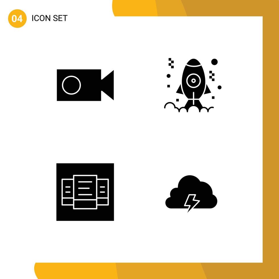 4 conjunto de glifos sólidos universales para aplicaciones web y móviles aplicación de mesa de cámara lanzamiento elementos de diseño vectorial editables en la nube vector