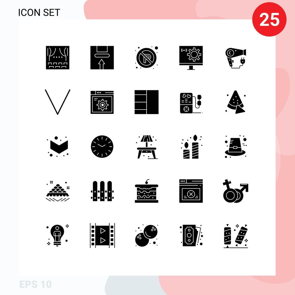 conjunto moderno de 25 glifos y símbolos sólidos, como programación, desarrollo de paquetes, signos de computadora, elementos de diseño vectorial editables vector