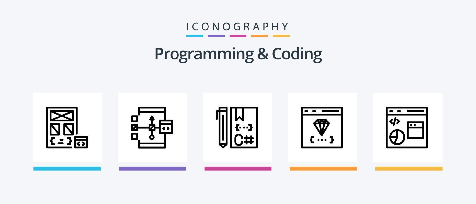 paquete de iconos de línea 5 de programación y codificación que incluye codificación. aplicación desarrollar. desarrollo. codificación. diseño de iconos creativos vector