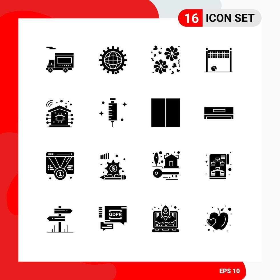paquete de líneas vectoriales editables de 16 glifos sólidos simples de juegos de red de programación de voleibol doméstico inteligente elementos de diseño vectorial editables vector