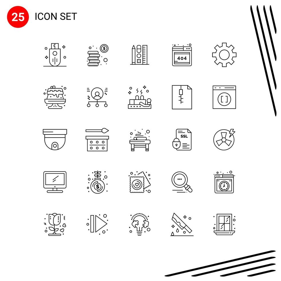 paquete de línea vectorial editable de 25 líneas simples de configuración error de inversión web elementos de diseño vectorial editables en línea vector