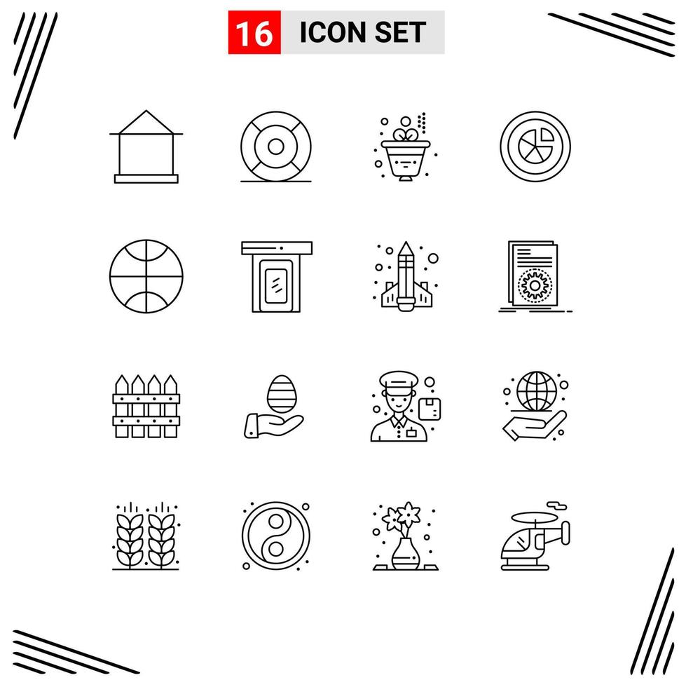 conjunto de pictogramas de 16 esquemas simples de diagrama de informe elementos de diseño de vector editables de inversión de gráfico de interfaz de usuario