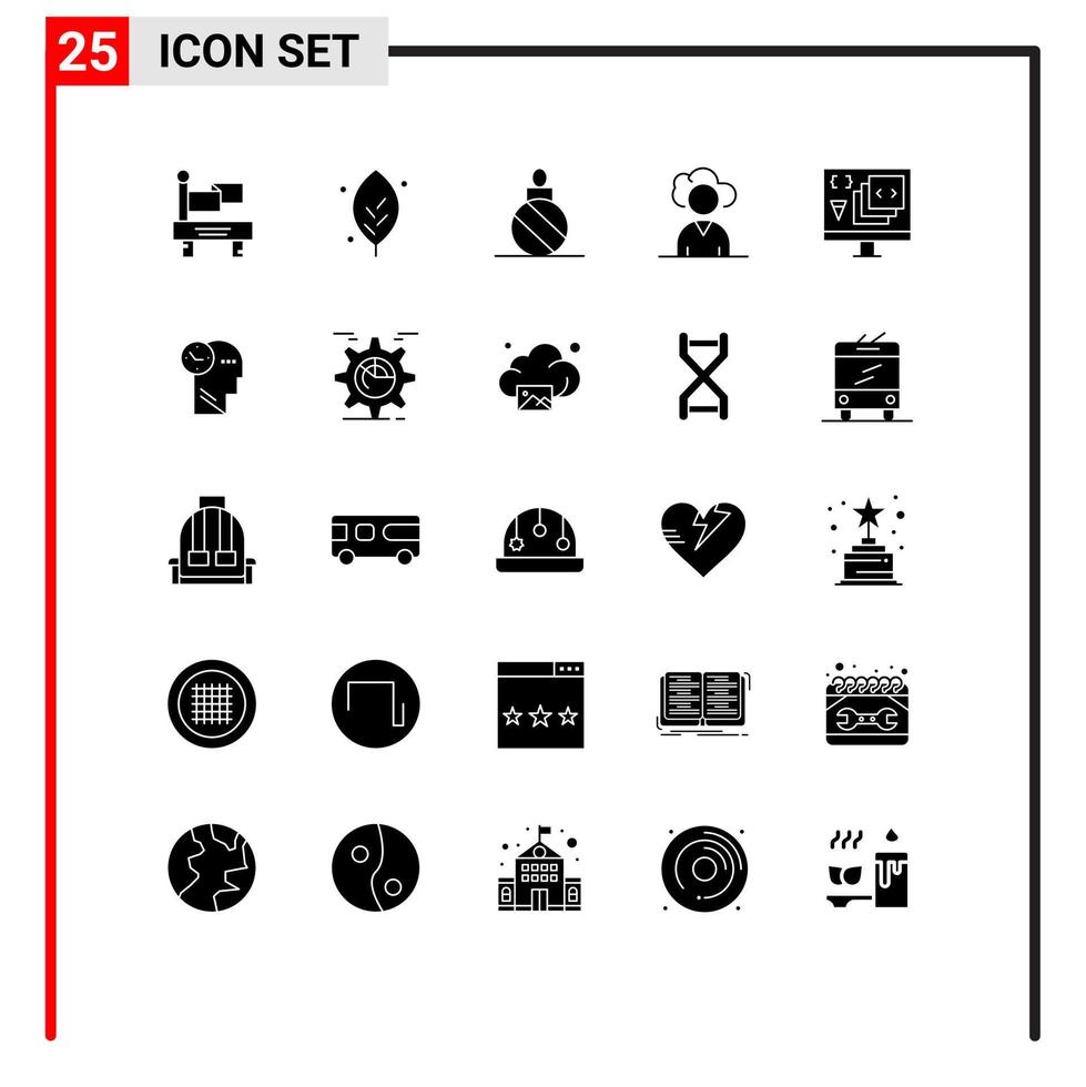 25 glifos sólidos universales establecidos para el desarrollo de aplicaciones web y móviles codificación aplicación de navidad subcontratar elementos de diseño vectorial editables vector