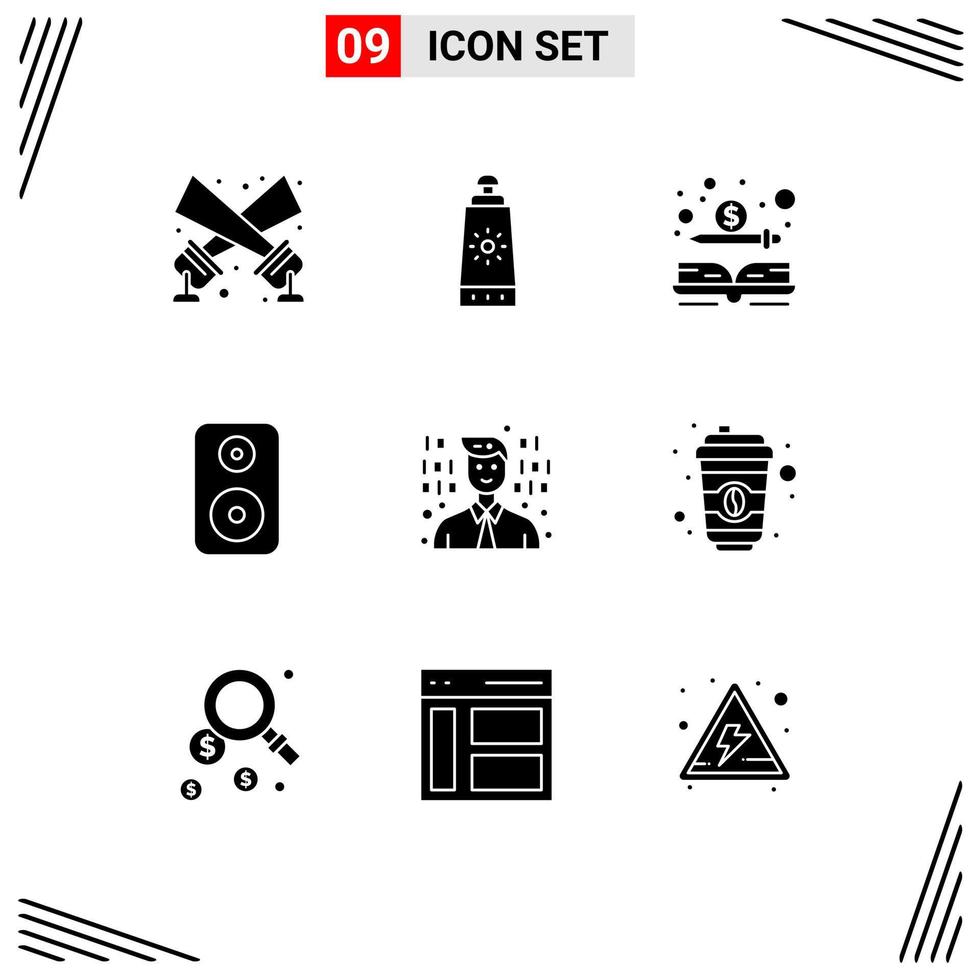 conjunto de 9 glifos sólidos vectoriales en cuadrícula para programador de café desarrollo de efectivo woofer elementos de diseño vectorial editables vector