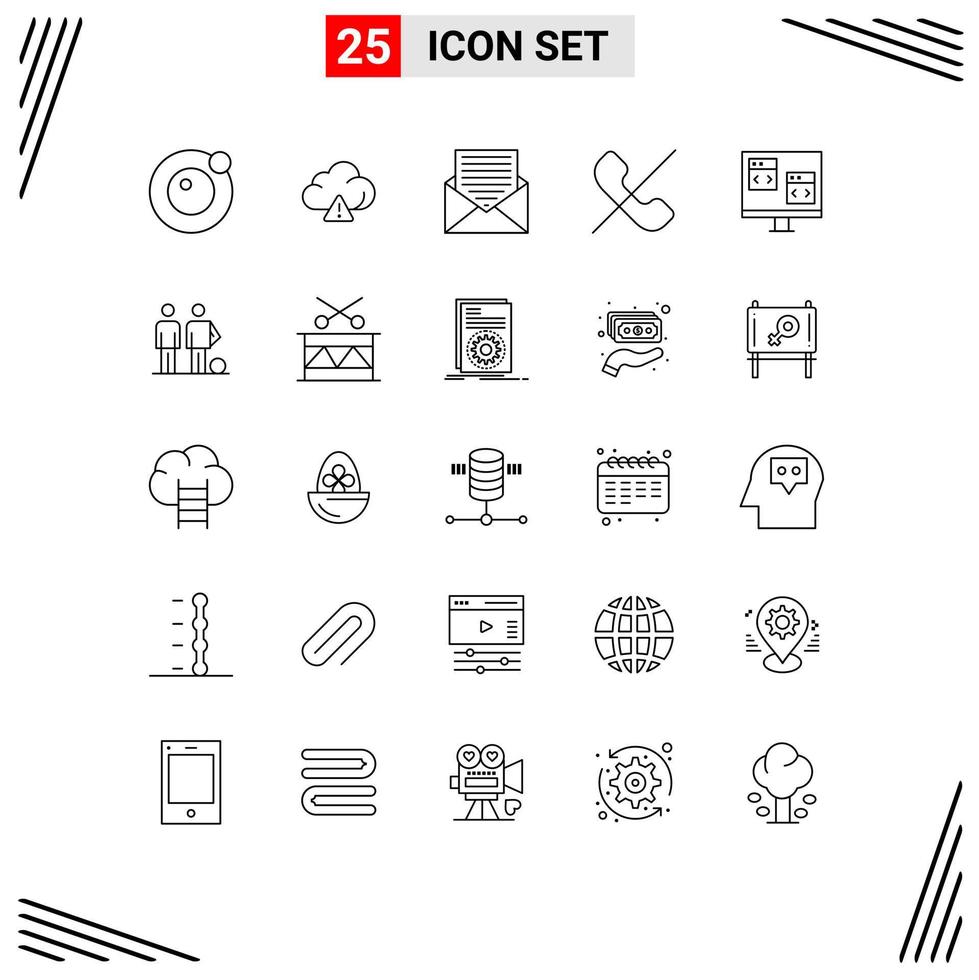 concepto de 25 líneas para sitios web móviles y aplicaciones computadora aplicación correo electrónico teléfono negar elementos de diseño vectorial editables vector