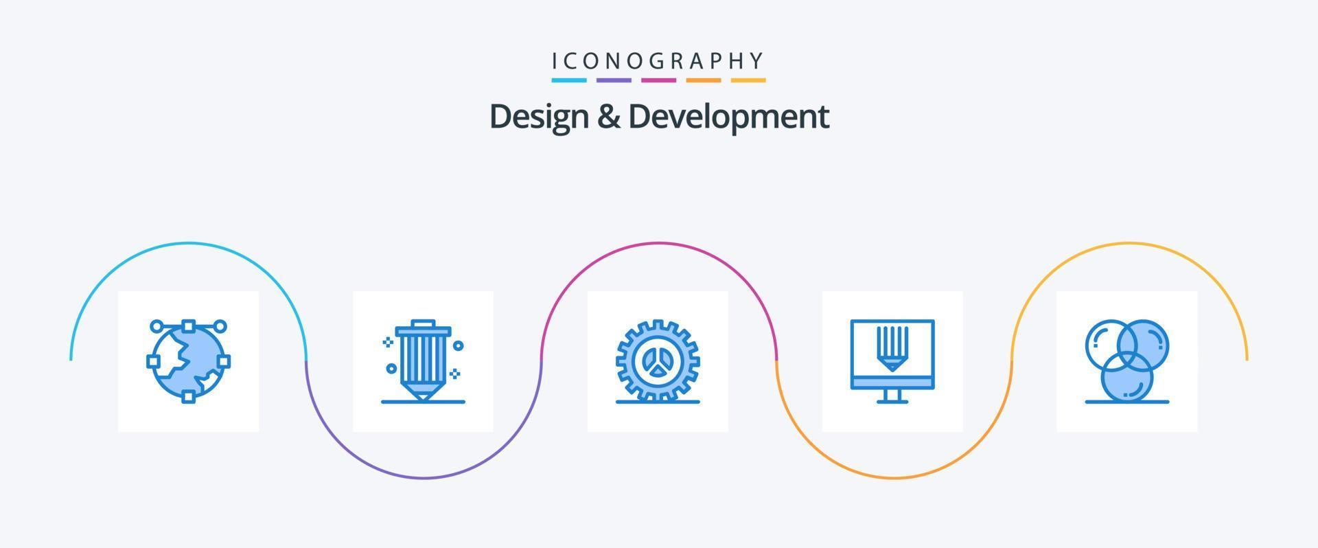 paquete de iconos azul 5 de diseño y desarrollo que incluye diseño. codificación. lápiz. desarrollo web. ajustes vector