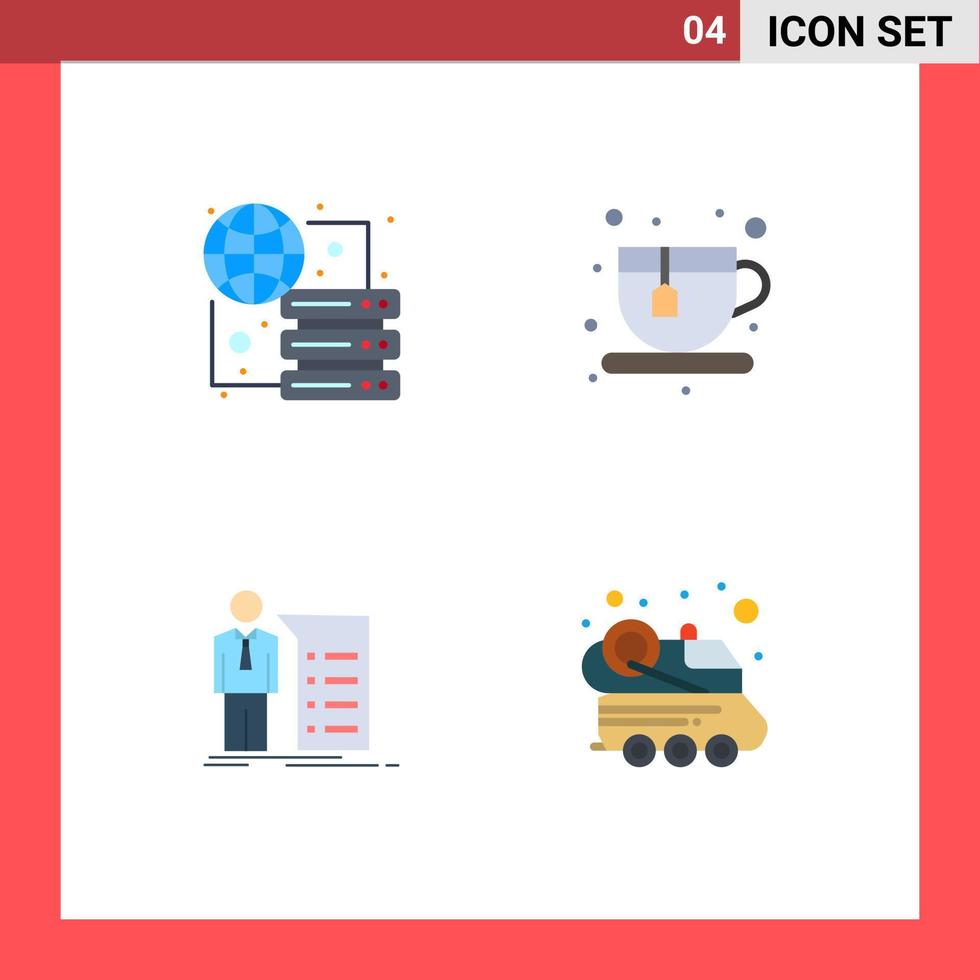 4 concepto de icono plano para sitios web móviles y aplicaciones conectar gráfico servidor café presentación elementos de diseño vectorial editables vector