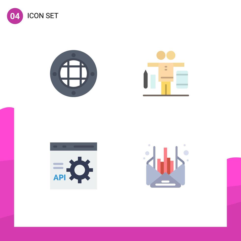 4 iconos planos universales establecidos para aplicaciones web y móviles codificación interior desarrollo de juegos al aire libre elementos de diseño vectorial editables vector