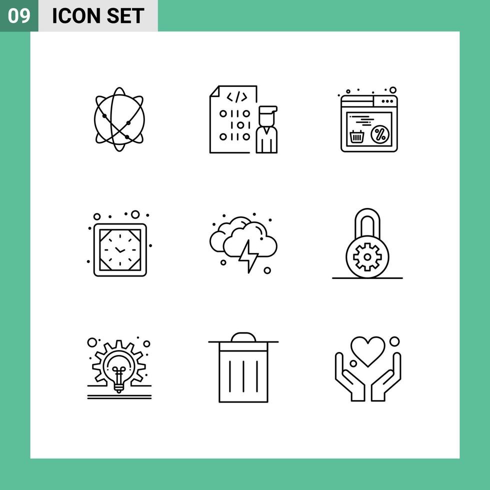 9 concepto de esquema para sitios web móviles y aplicaciones temporizador de programación de reloj de pared en la nube elementos de diseño vectorial editables web vector