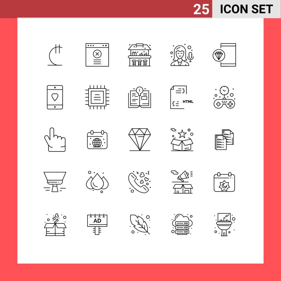 25 símbolos de signos de línea universales de programación desarrollan codificación de agua grabando elementos de diseño vectorial editables vector